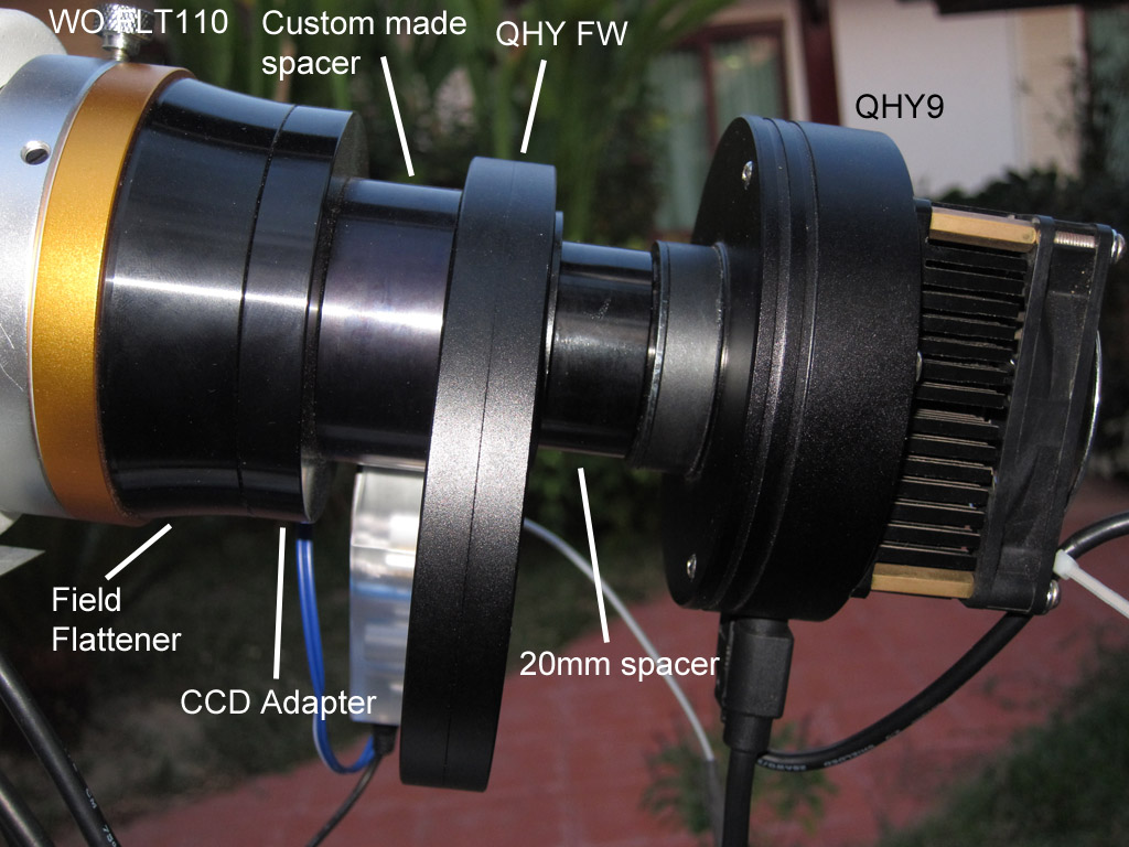 in either direction so I used a ProStar 20mm T-thread spacer between the QHY9 camera and the filter wheel.